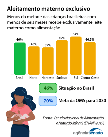 Atento ao assunto, o Senado tem discutido propostas que buscam ampliar o apoio à amamentação no país. A senadora Zenaide Maia (PSD-RN) é autora do projeto que garante o direito de mães e bebês à amamentação em maternidades e outras instituições de saúde. O PL 2.846/2021 propõe mudanças no Estatuto da Criança e do Adolescente (Lei 8.069, de 1990) para estabelecer que hospitais e unidades de atendimento a gestantes devem assegurar esse direito, exceto por razões de saúde. A proposta está em análise na Câmara dos Deputados.