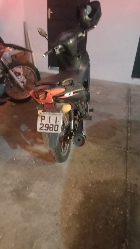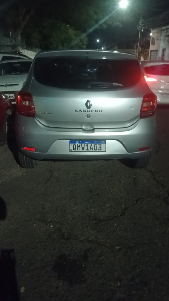A partir das informações repassadas, a equipe policial deslocou-se até a Avenida Mirtes Melão, nas proximidades do Conjunto Ananias Carvalho, onde localizou um Renault Sandero prata — veículo da vítima — e uma motocicleta Shineray 49cc, também com registro de roubo. Dois suspeitos foram detidos no local.