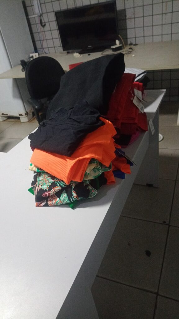 Além dos veículos, foram apreendidos três celulares e 38 peças de roupas destinadas à venda.