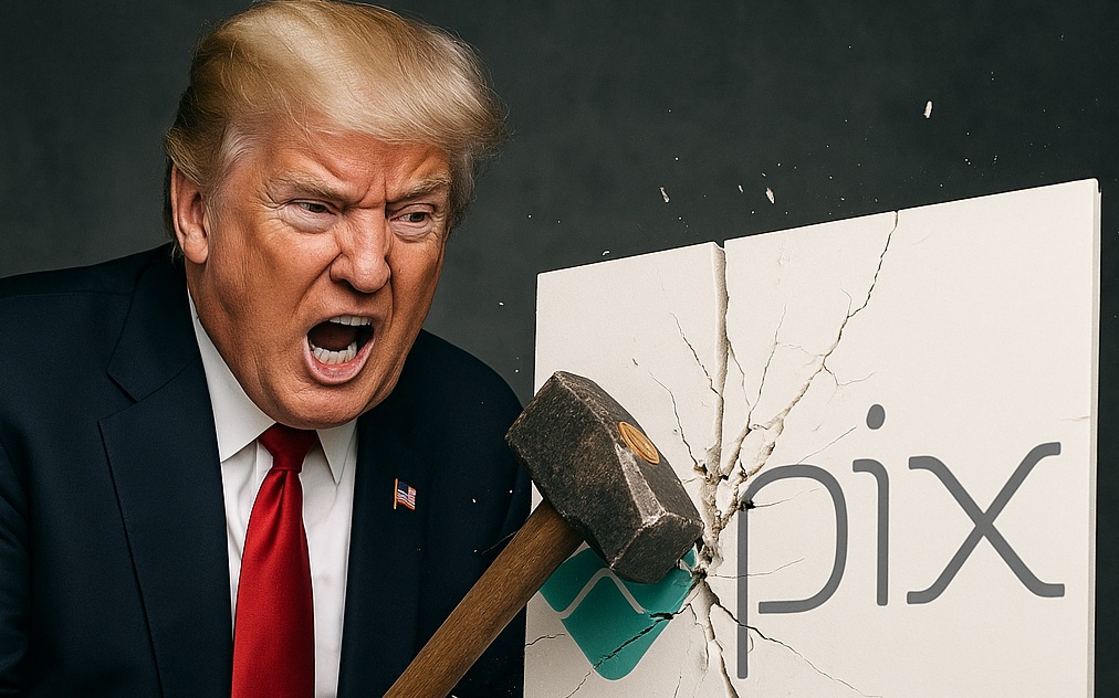 As redes sociais explodiram nesta quarta-feira (16/07) com críticas à mais nova ofensiva do governo dos Estados Unidos, agora contra o Pix, sistema de pagamentos instantâneos que revolucionou a vida de milhões de brasileiros. Hashtags como #DefendaOPix, #BolsotrumpContraoPix e #InimigosdoPix dominaram os trending topics, enquanto usuários denunciavam a tentativa de Donald Trump – agora autoproclamado “ditador do mundo” – de interferir em uma política pública brasileira de sucesso.